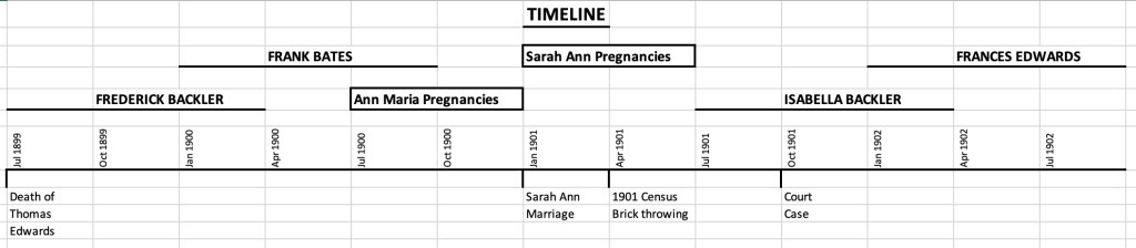Edward’s marriage in December 1900 to Sarah Ann may have prompted the start of Ann Maria’s bad behaviour in early 1901, but it seems likely that the escalation in her bad behaviour was after she became pregnant with Isabel in July 1901. I am not quite sure what her reaction was when Sarah Ann again became pregnant in January 1902, once more overlapping her confinement with Ann Maria. Edward’s and Sarah Ann’s daughter Frances Edwards was born on 3rd September 1902.